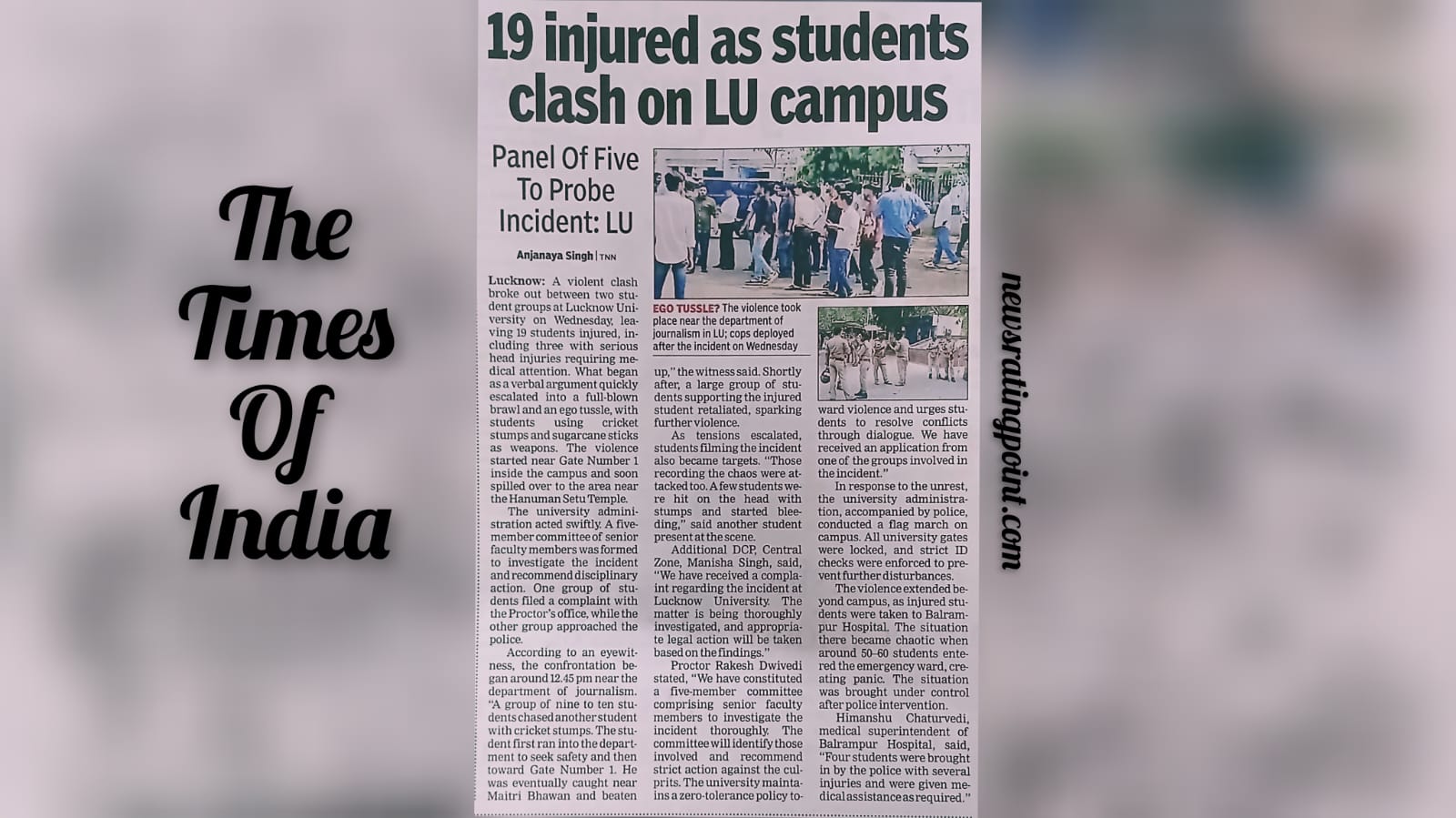 Lucknow: A violent clash broke broke out between two student groups at Lucknow University on Wednesday, having 19 students injured, including three with serious head injuries requiring medical attention. What began as a verbal argument quickly escalated into a full-blown brawl and an ego tussle, with students using cricket stumps and sugarcane sticks as weapons. The violence started near Gate Number 1 inside the campus and soon spilled over to the area near the Hanuman Setu Temple. The university administration acted swiftly. A five member committee of senior faculty members was formed to investigate the incident and recommend disciplinary action. One group of sha dents filed a complaint with the Proctor’s office, while the other group approached the police. According to an eyewitness, the confrontation began around round 12.45 pm near the department of journalism.