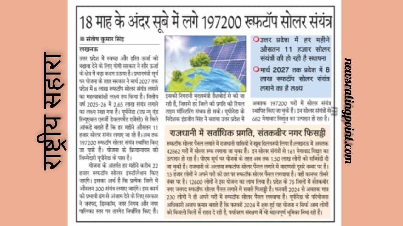 18 माह में लगे 197200 रूफटॉप सोलर संयंत्र : राष्ट्रीय सहारा
