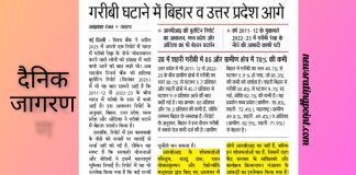 गरीबी घटाने में बिहार व उत्तर प्रदेश आगे : दैनिक जागरण