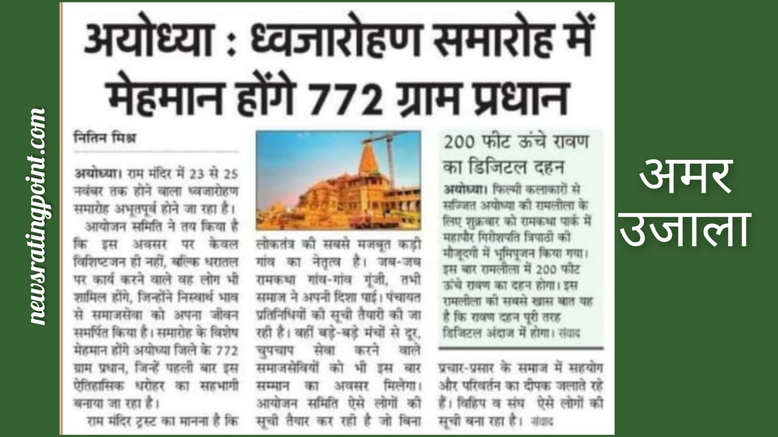 लखनऊ: राम मंदिर में 23 से 25 नवंबर तक होने वाला ध्वजारोहण समारोह अभूतपूर्व होने जा रहा है। आयोजन समिति ने तय किया है कि इस अवसर पर केवल विशिष्टजन ही नहीं, बल्कि धरातल पर कार्य करने वाले वह लोग भी शामिल होंगे, जिन्होंने निस्वार्थ भाव से समाजसेवा को अपना जीवन समर्पित किया है। समारोह के विशेष मेहमान होंगे अयोध्या जिले के 772 ग्राम प्रधान, जिन्हें पहली बार इस ऐतिहासिक धरोहर का सहभागी बनाया जा रहा है। राम मंदिर ट्रस्ट का मानना है कि लोकतंत्र की सबसे मजबूत कड़ी गांव का नेतृत्व है। जब-जब रामकथा गांव-गांव गूंजी, तभी समाज ने अपनी दिशा पाई। पंचायत प्रतिनिधियों की सूची तैयारी की जा रही है। वहीं बड़े-बड़े मंचों से दूर, चुपचाप सेवा करने वाले समाजसेवियों को भी इस बार सम्मान का अवसर मिलेगा। आयोजन समिति ऐसे लोगों की सूची तैयार कर रही है जो बिना प्रचार-प्रसार के समाज में सहयोग और परिवर्तन का दीपक जलाते रहे हैं। विहिप व संघ ऐसे लोगों की सूची बना रहा है। फिल्मी कलाकारों से सज्जित अयोध्या की रामलीला के लिए शुक्रवार को रामकथा पार्क में महापौर गिरीशपति त्रिपाठी की मौजूदगी में भूमिपूजन किया गया। इस बार रामलीला में 200 फोट ऊंचे रावण का दहन होगा। इस रामलीला की सबसे खास बात यह है कि रावण दहन पूरी तरह डिजिटल अंदाज में होगा।