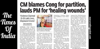 मुख्यमंत्री ने विभाजन के लिए कांग्रेस को जिम्मेदार ठहराया : TOI