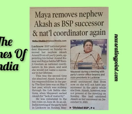 माया ने आकाश को बसपा के उत्तराधिकारी पद से हटाया : TOI