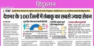 देश के 100 जिलों में तंबाकू का सबसे ज्यादा सेवन :...