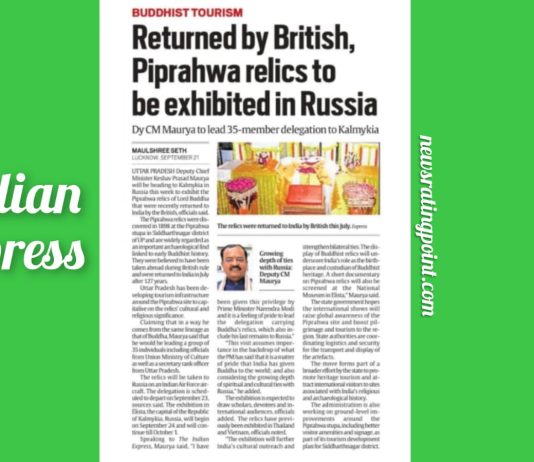 पिपराहवा अवशेष रूस में प्रदर्शित किया जाएगा : Indian Express