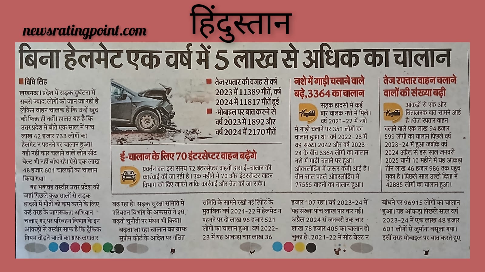 बिना हेलमेट एक वर्ष में 5 लाख से अधिक का चालान : हिंदुस्तान