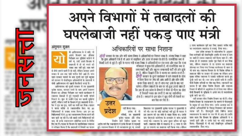 लखनऊ। तबादलों और अफसरों के मनमानी की जनसत्ता की खबर ने यूपी सरकार की छवि पर डेंट लगाया है। खबर में लिखा गया है कि पांच साल सरकार चलाने के बाद दूसरी बार पूर्ण बहुमत की सरकार में सेवानिवृत्त अधिकारियों के तबादलों ने योगी आदित्यनाथ की खासी किरकिरी कराई है।