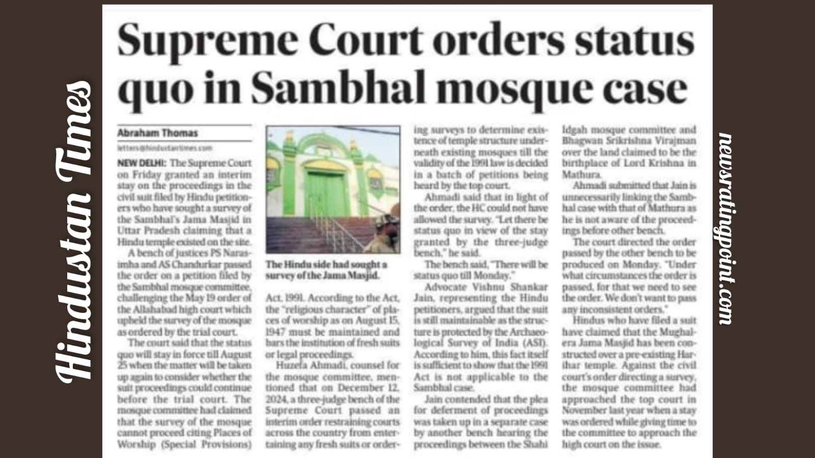 संभल मस्जिद मामला, यथास्थिति बनाए रखने का आदेश : HT