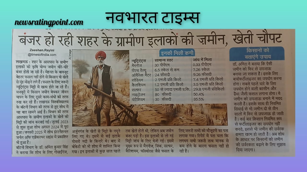 लखनऊ। शहर के आसपास के ग्रामीण इलाकों की कृषि योग्य जमीन धीरे-धीरे बंजर होती जा रही है। मेहनत के बावजूद बेहतर फसल नहीं होने से किसान भी खेती से मुंह मोड़ने लगे हैं। फसल के लिए जरूरी न्यूट्रिएंट्स मिट्टी में खत्म होते जा रहे हैं। मजबूरी में किसान जमीन बेचकर जीवन यापन के लिए दूसरे काम-धंधों की तरफ रुख कर रहे हैं। लखनऊ विश्वविद्यालय के बॉटनी विभाग की तरफ से हुए शोध में यह बात सामने आई है। विभाग की तरफ आसपास के ग्रामीण इलाकों के खेतों की मिट्टी की जांच करवाई गई। जुलाई 2023 से शुरू हुआ शोध अगस्त 2024 में पूरा हुआ। जनवरी 2025 में शोध इंटरनैशनल जर्नल ऑफ एग्रीकल्चर साइंस में प्रकाशित भी हुआ है।