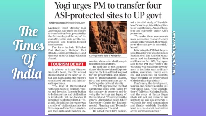 Lucknow: Chief Minister Yogi Adityanath has urged the Centre to transfer four forts, protected by the Archaeological Survey of India (ASI), to the state govt for up gradation and tourism-focused The forts include Talbehat Fort (Lalitpur), Kalinjar Fort (Banda), Madfa (Chitrakoot), and the steps at Barua Sagar Ghats in Jhansi. In a letter to Prime Minister Narendra Modi, the CM termed Bundelkhand as the heart of In dia, and highlighted the region’s unmatched cultural and historical importance. “The land of Bundelkhand witnessed tales of courage, valour, and devotion. Its contribution to Indian culture and civilisation is invaluable. Yet, for decades, it remained neglected till 2014, Yogisaid. He said that the region was a cradle of civilisation since the Stone Age and later flourished un der the Gupta and Chandela dynasties, whose rulers built magnificent temples and forts.